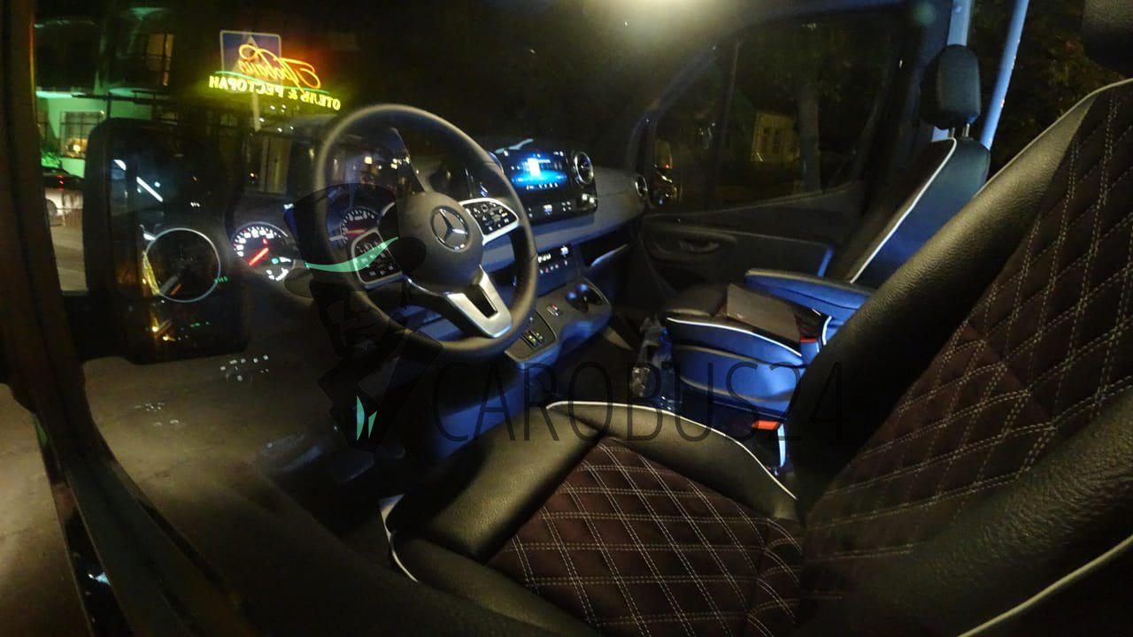 Даже искушённому роскошью клиенту сложно найти недостатки в технически совершенном элитном микроавтобусе от немецкого автопрома. Новый Sprinter VIP марки Mercedes – это настоящая зона комфорта, воплощённого в удобных сиденьях из кожи, в красивой отделке салона с подсветкой, в панорамных окнах с затемнением, в современных мультимедийных устройствах, которые не позволят скучать в поездке.