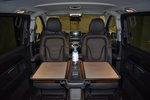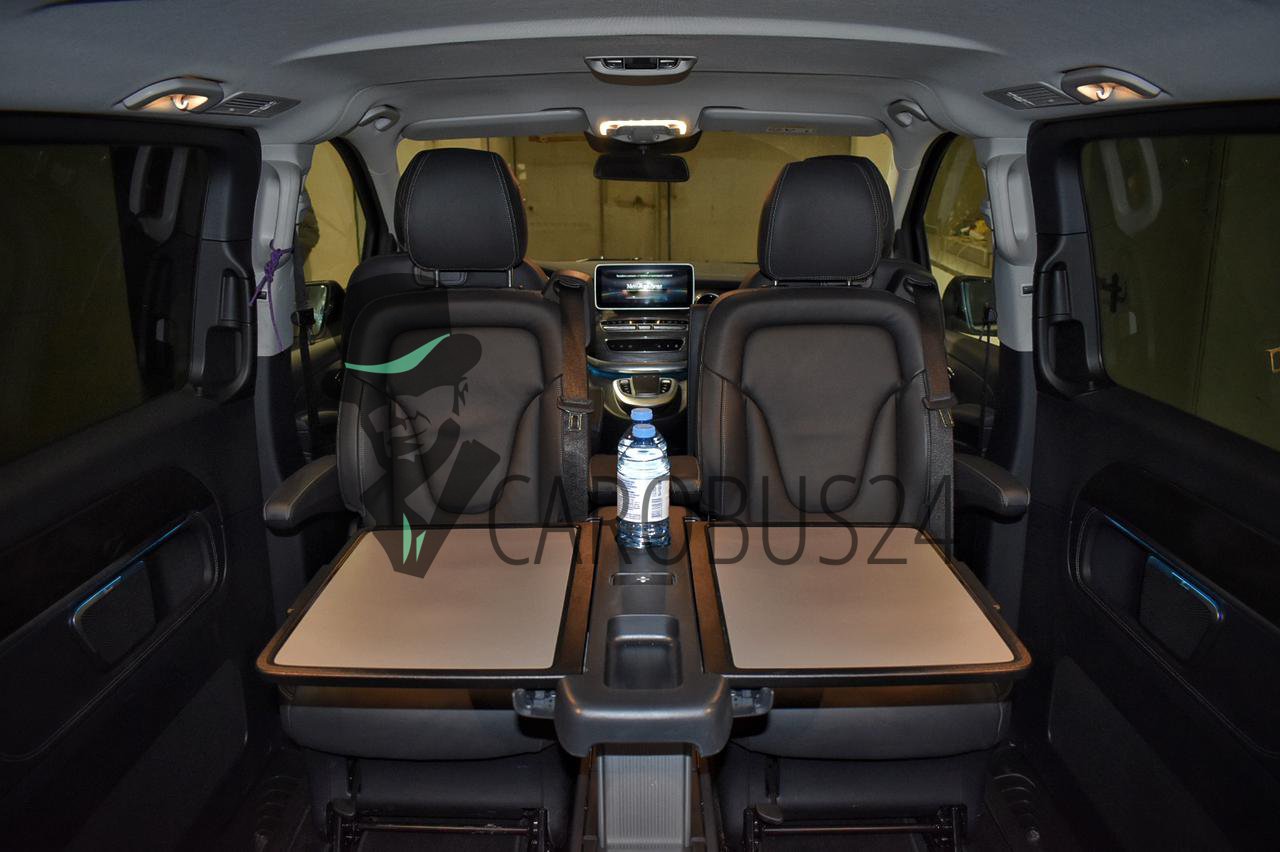 V-класс подкупает своим превосходным комфортом, солидностью и фирменным стильным дизайном ‒ от исключительной вместительности до несравненного качества материалов и отделки из кожи чёрного, белого, бежевого цвета, включая интуитивно понятную концепцию управления, естественное освещение, аудиосистему, кондиционер.