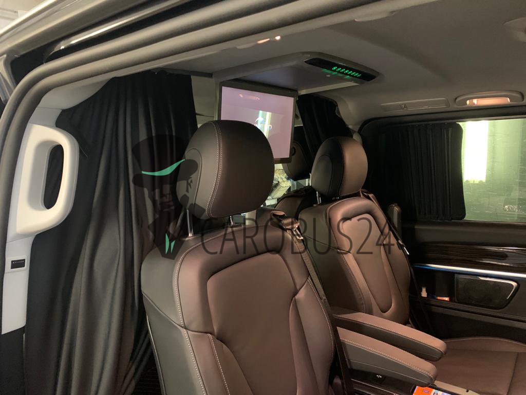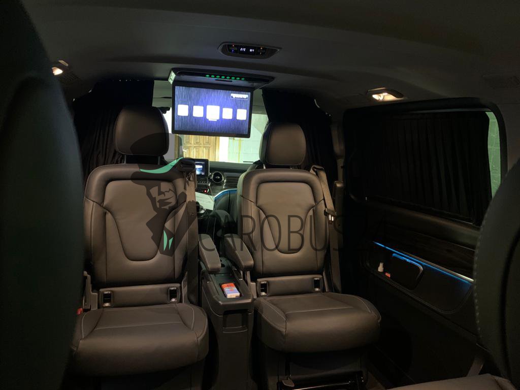 V-класс подкупает своим превосходным комфортом, солидностью и фирменным стильным дизайном ‒ от исключительной вместительности до несравненного качества материалов и отделки из кожи чёрного, белого, бежевого цвета, включая интуитивно понятную концепцию управления, естественное освещение, аудиосистему, кондиционер.