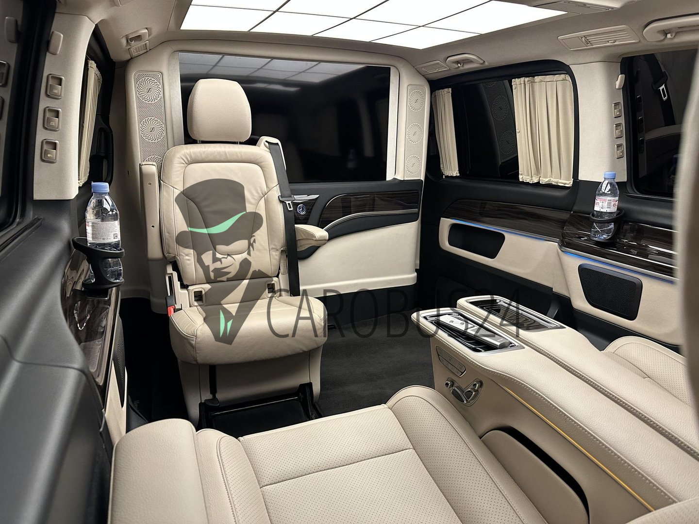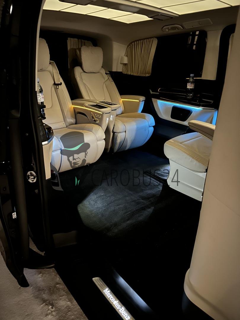 V-класс подкупает своим превосходным комфортом, солидностью и фирменным стильным дизайном ‒ от исключительной вместительности до несравненного качества материалов и отделки из кожи чёрного, белого, бежевого цвета, включая интуитивно понятную концепцию управления, естественное освещение, аудиосистему, кондиционер.